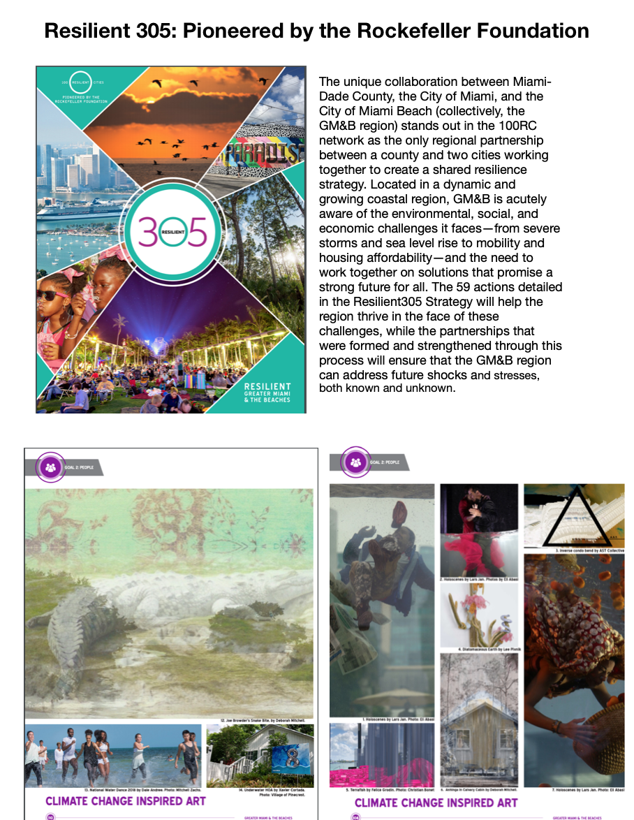 100 Resilient Cities: A strategic study pioneered by the Rockefeller Foundation, including Miami Beach, City of Miami and Miami-Dade County. See climate change-related works on Pages 108-110.